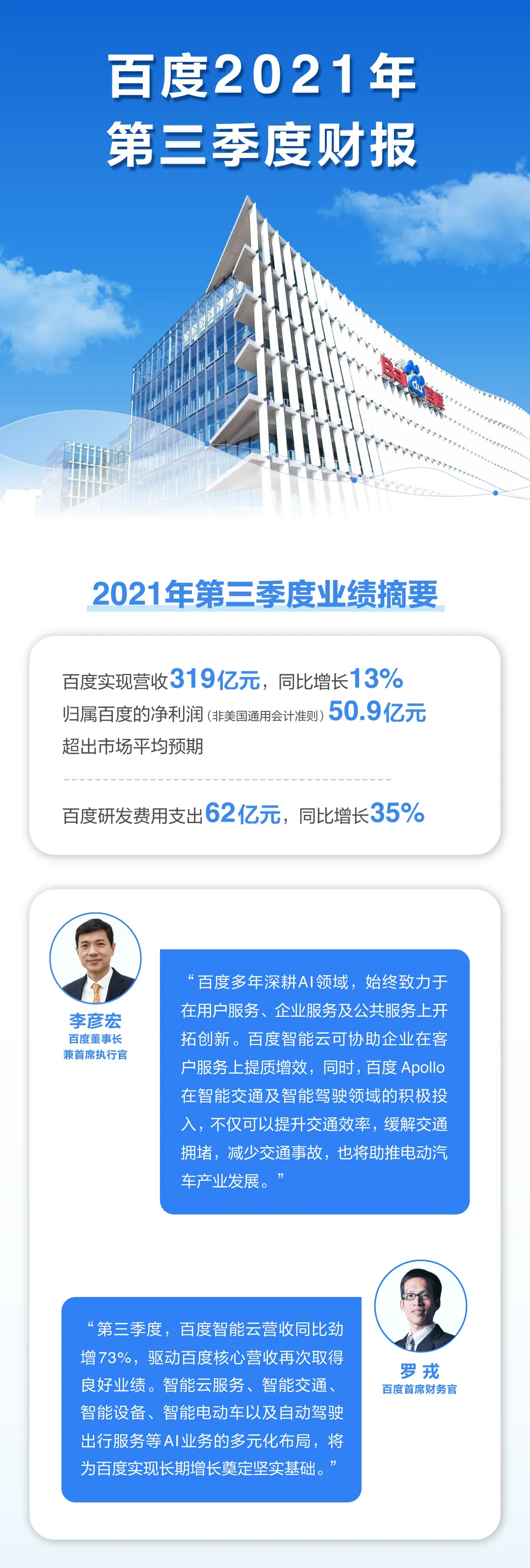 百度Q3營收超預期,研發投入62億元,同比增長35%