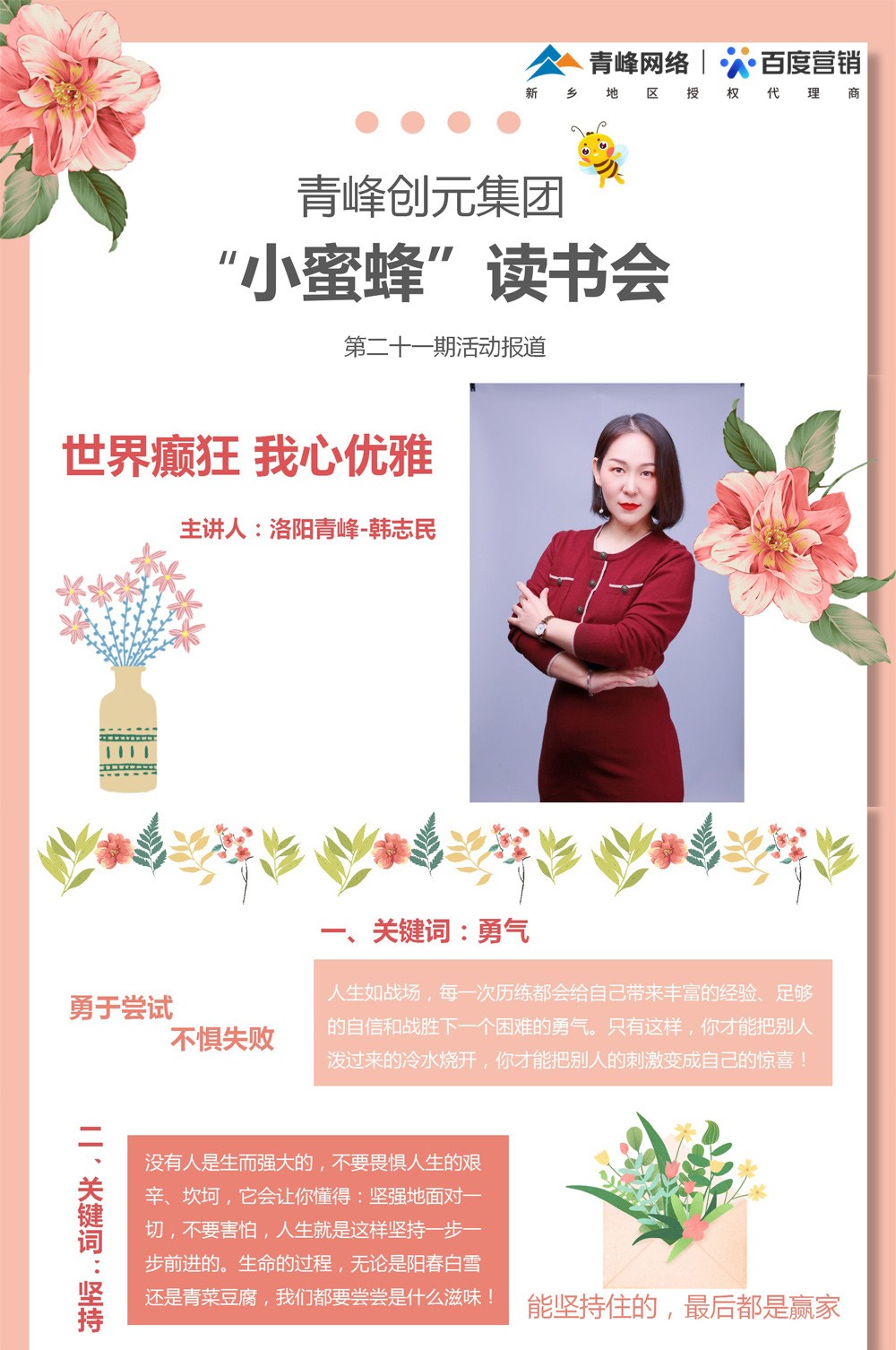 【青峰創元集團】“小蜜蜂”讀書會第21期:《世界癲狂 我心優雅》-- 韓志民分享