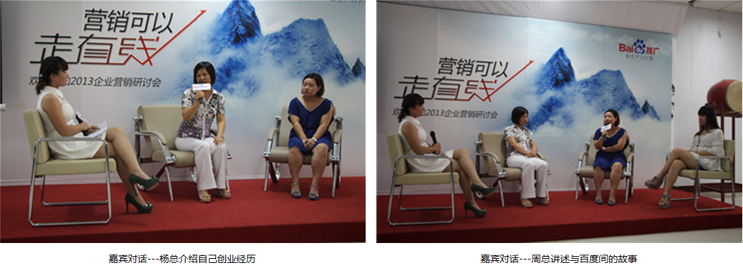 下半場嘉賓對話環(huán)節(jié),是本次會議的一大亮點,會議特別邀請了新鄉(xiāng)本土的兩家百度推廣老客戶-新鄉(xiāng)宇仁化學有限公司楊總、新鄉(xiāng)市通用電機有限公司周總現身說法,她們用最樸實的語言講述著與百度推廣的故事,當講到百度每年給他們帶來的收益時,臉上的笑容都是溢于言表。通過她們的講述,使參加本次會議的新客戶對百度推廣有了更深的了解,也更加堅定了他們與百度合作,加入百度推廣的信心。
