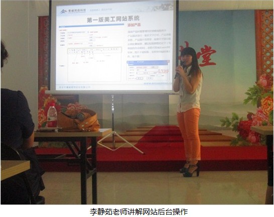 時間剛過下午兩點(diǎn)就絡(luò)繹有客戶前來簽到,兩點(diǎn)半左右來客達(dá)到高峰,網(wǎng)站客服部的同事們忙的不亦樂乎,由于事前準(zhǔn)備充分,前來參會的客戶井然有序的進(jìn)場落座。三點(diǎn)鐘會議準(zhǔn)時開始,先有主持人張美玉帶來互動小游戲拉開本期會議的序幕,上半場主講李靜茹分別為客戶詳細(xì)講解了不同版本網(wǎng)站后臺的操作,其間不時有客戶就網(wǎng)站后臺操作問題跟李靜茹溝通交流;下半場姬燕娜就商務(wù)快車后臺的操作跟與會客戶進(jìn)行了耐心而細(xì)致的講解。
