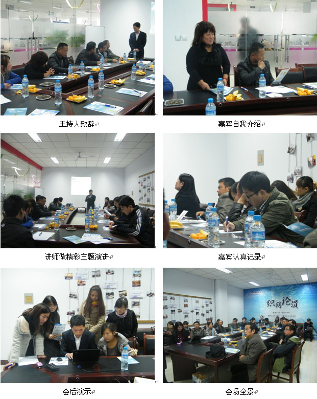 本次會議在下午四點鐘落下帷幕。在會中,講師著重分析與講解了網民的購買行為,幫助客戶抓住上門生意。通過案例分析使客戶認識到了自己平時存在的網絡營銷誤區,為客戶今后的網絡營銷鋪了一條通向成功的道路,在此我們感謝鄭揚先生的精彩分享,幫助中小企業在意識上向前跨了一大步。