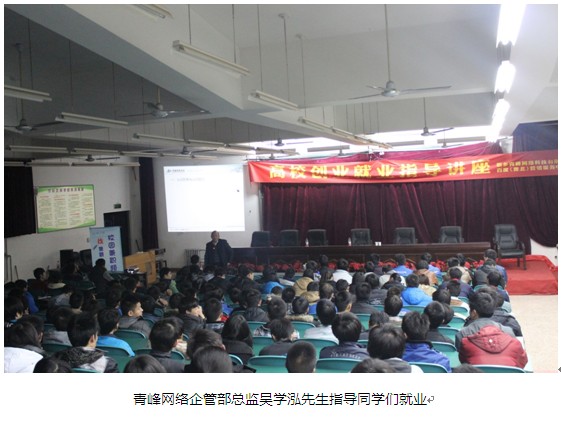 2012年11月28日,由新鄉(xiāng)人才網(wǎng)與新鄉(xiāng)市青峰網(wǎng)絡科技有限公司聯(lián)合舉辦的校園巡講在新鄉(xiāng)技師學院拉開帷幕,本次巡講由新鄉(xiāng)青峰網(wǎng)絡企管總監(jiān)吳學泓先生、新鄉(xiāng)人才網(wǎng)市場部總監(jiān)陳永先生擔任主講,新鄉(xiāng)青峰網(wǎng)絡企管總監(jiān)吳學泓先生為莘莘學子講解了如何從校園到職場的華麗轉(zhuǎn)身,從九個方面闡述了擇業(yè)、就業(yè)、發(fā)展對人生的意義。吳總作為資深人力資源專家,面對如今不景氣的大學生就業(yè)形勢,吳總開門見山的就提出了“認識形勢、認識自己”,勸導同學們要謹慎對待自己的第一份工作,認真選擇和自己匹配的企業(yè)和崗位。
