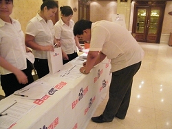 客戶陸續到場,并在簽到處認真的填寫個人資料