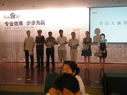 2009年8月13日,以“專業效果 步步為贏”為主題的百度推廣專業版VIP客戶培訓會在安陽飛鷹賓館如期舉行。帶著對百度的厚愛以及對專業版的支持,廣大客戶如約而至,認真聽取了百度華中區高級培訓講師高勝來先生帶來的精彩演講。