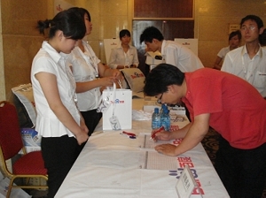 客戶認(rèn)真的填寫(xiě)簽到信息