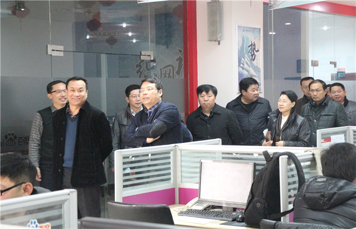 2015年1月8日上午,紅旗區政府考察團領導一行10余人,蒞臨河南青峰網絡科技有限公司參觀考察。青峰集團董事長兼CEO余進先生對來訪的領導表示了熱烈的歡迎并陪同參觀。